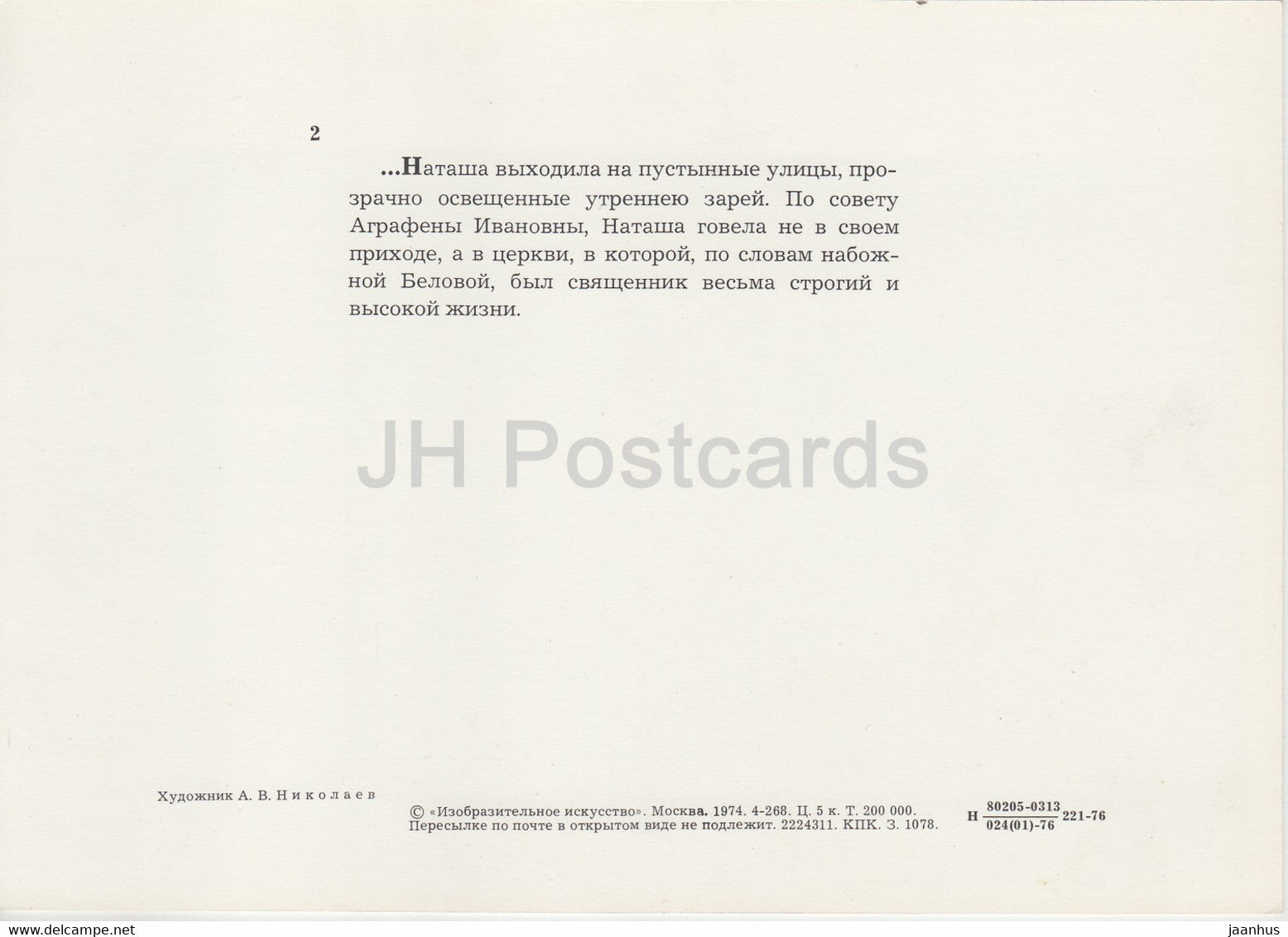 illustration by A. Nikolayev - streets - War and Peace by L. Tolstoy - large format card 1974 - Russia USSR - unused