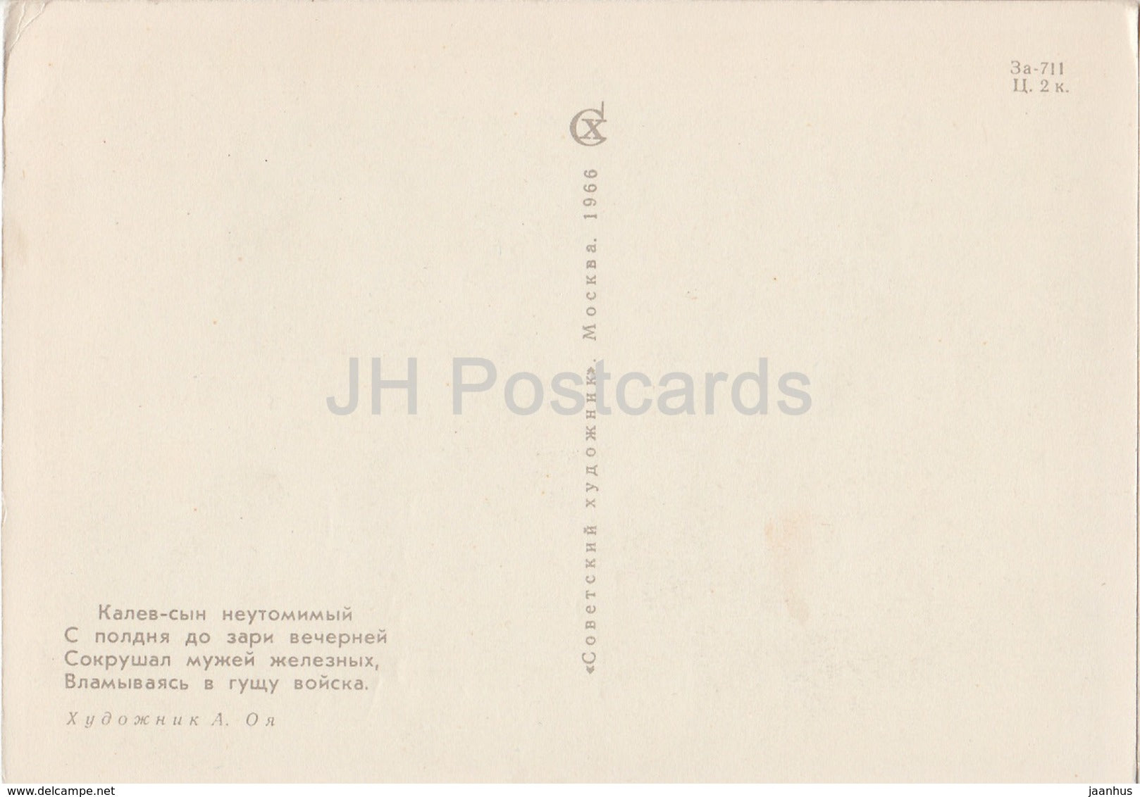 illustration by A. Oja - Estonian Epic Poem Kalevipoeg - battle - horse - 1966 - Russia USSR - unused