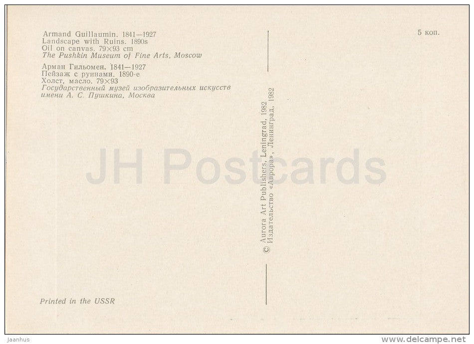 illustration by Armand Guillaumin - Landscape with Ruins , 1890s - French Art - 1982 - Russia USSR - unused