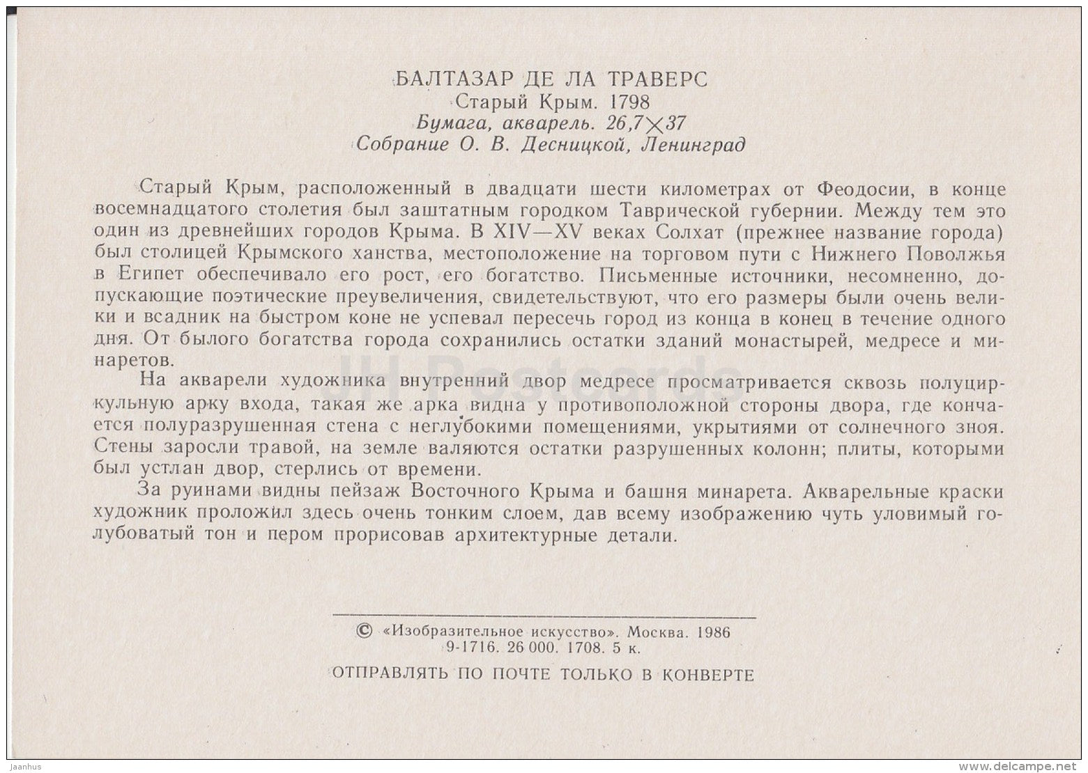 illustration by Balthazar de la Traverse - Old Crimea , 1798 - 1986 - Russia USSR - unused