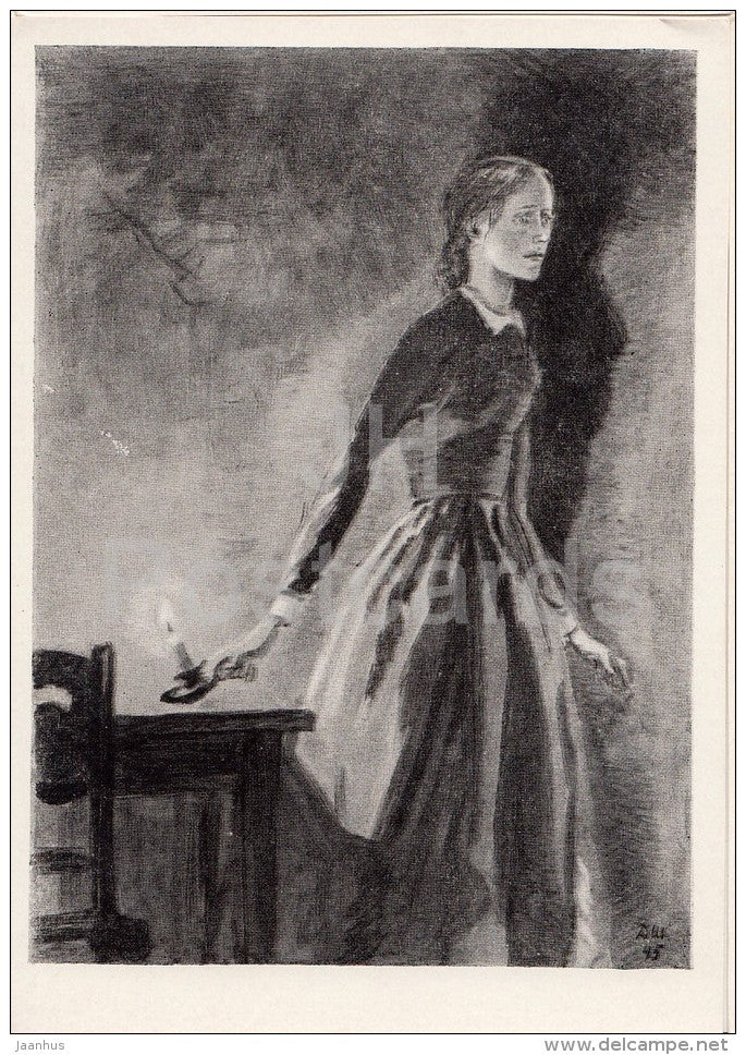illustration by D. Shmarinov - Sonya Marmeladova - Crime and Punishment by F. Dostoyevsky - 1961 - Russia USSR - unused