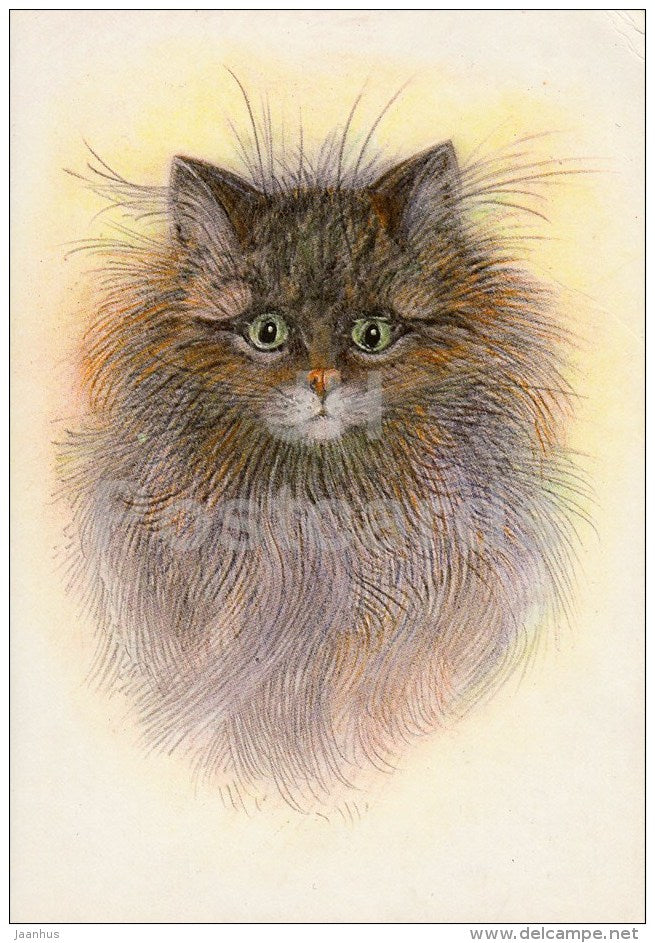 illustration by E. Tikerpae - cat - 1988 - Estonia USSR - unused
