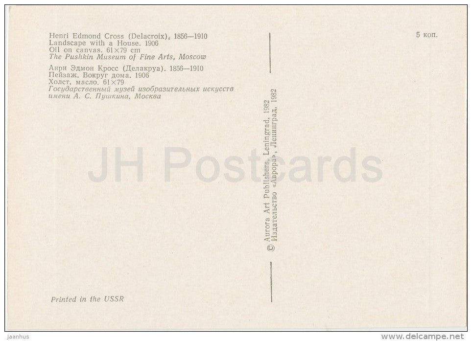 illustration by Henri Edmond Cross (Delacroix) - Landscape with a House - French Art - 1982 - Russia USSR - unused