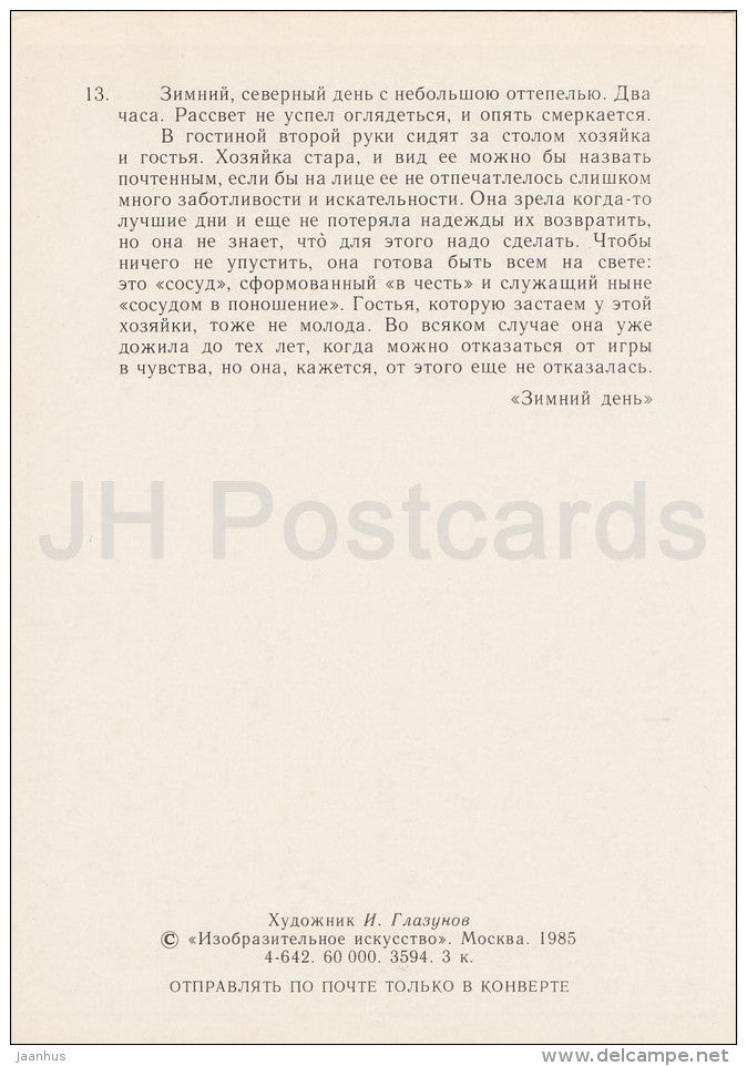 illustration by I. Glazunov - Winter Day by N. Leskov - women - Russia USSR - 1985 - unused