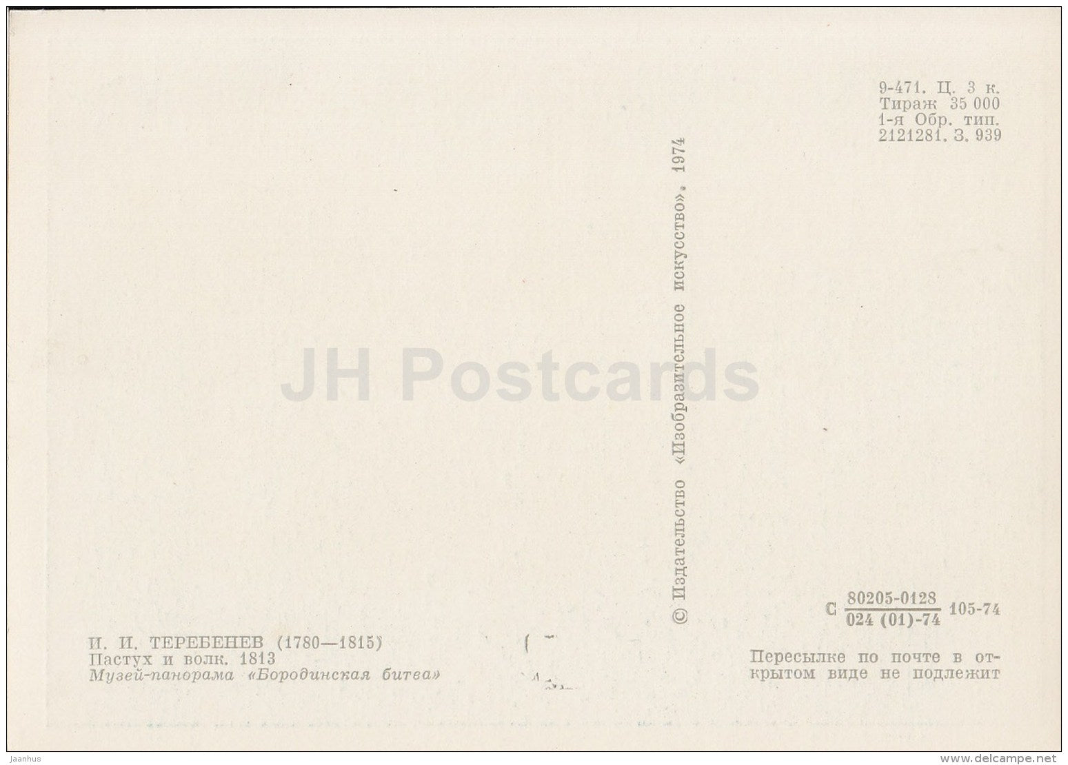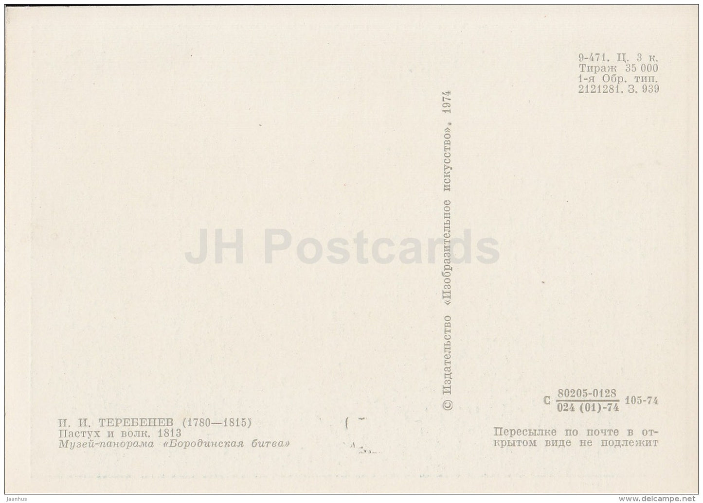 illustration by I. Terebenev - The shepherd and the Wolf , 1813 - 1974 - Russia USSR - unused