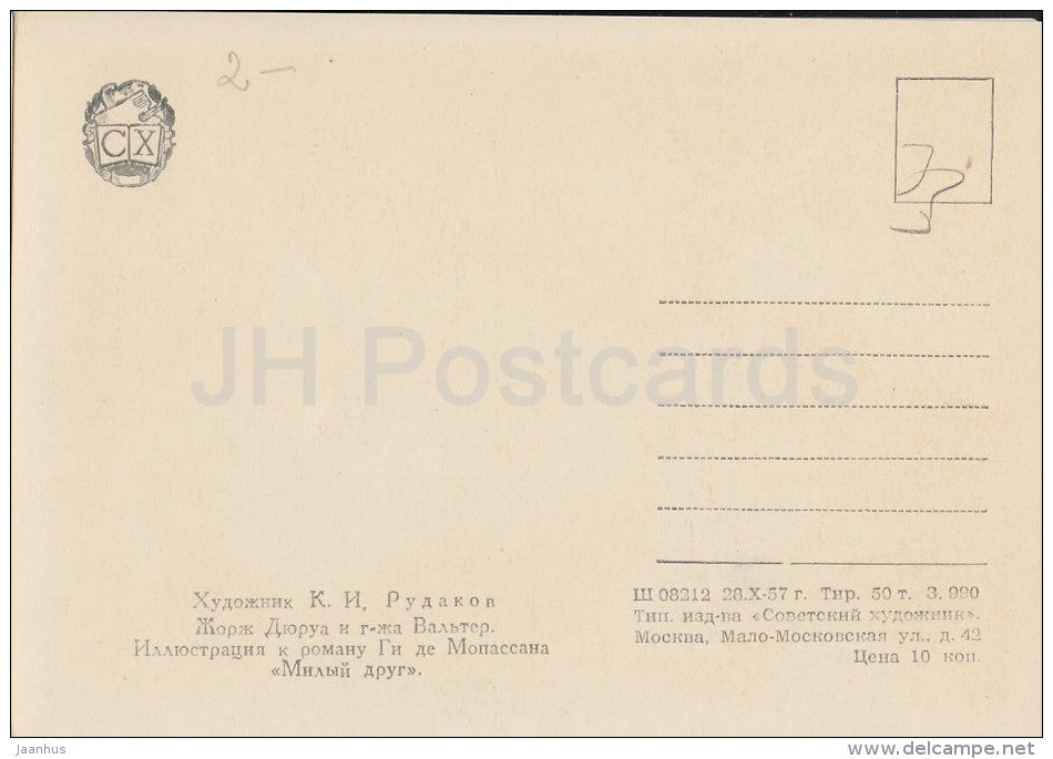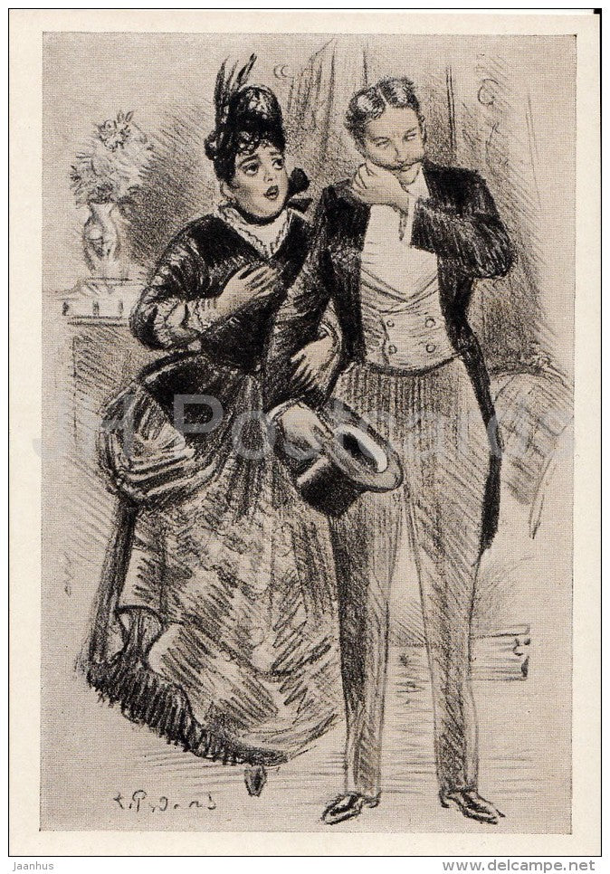 illustration by K. Rudakov - Bel-Ami by Guy de Maupassant - Georges Duroy - Virginie Walter 1957 - Russia USSR - unused
