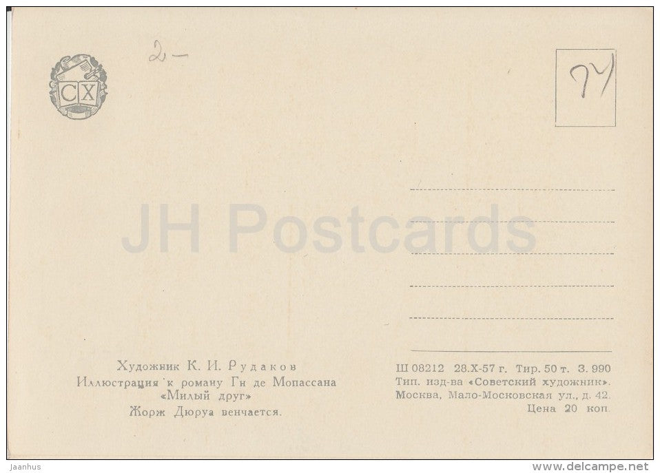 illustration by K. Rudakov - Bel-Ami by Guy de Maupassant - Georges Duroy Wedding - 1957 - Russia USSR - unused