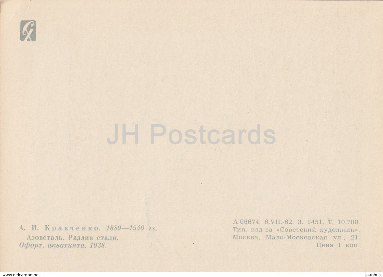 illustration by Kravchenko - Azovstal - Steel spill - heavy industry - 1962 - Russia USSR - unused