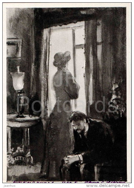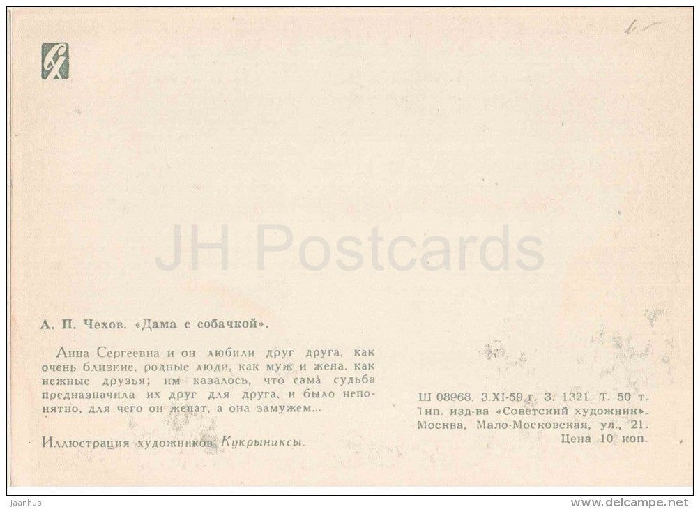 illustration by Kukryniksy - 2 - The Lady with the Dog by Anton Chekhov - lady and a man - 1959 - Russia USSR - unused
