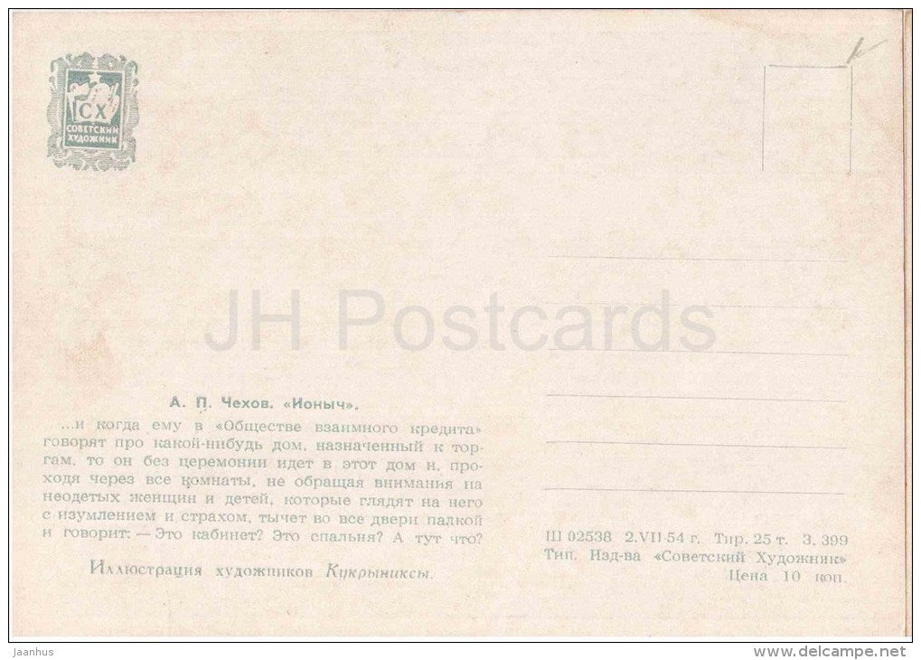 illustration by Kukryniksy - Ionych by Anton Chekhov - old man - 1954 - Russia USSR - unused