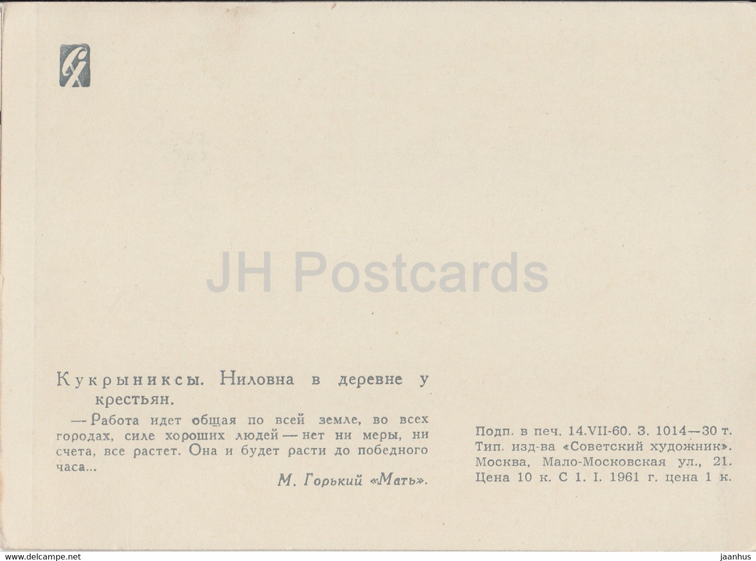 illustration by Kukryniksy - Mother by M. Gorky - Nilovna in the village with the peasants - 1960 - Russia USSR - unused