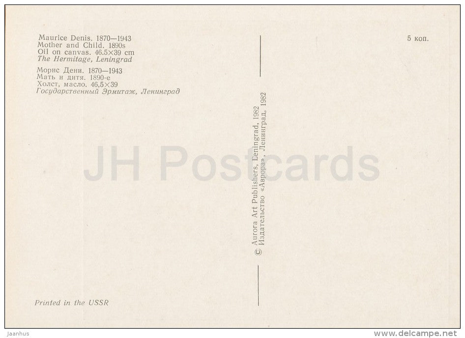 illustration by Maurice Denis - Mother and Child , 1890s - French Art - 1982 - Russia USSR - unused