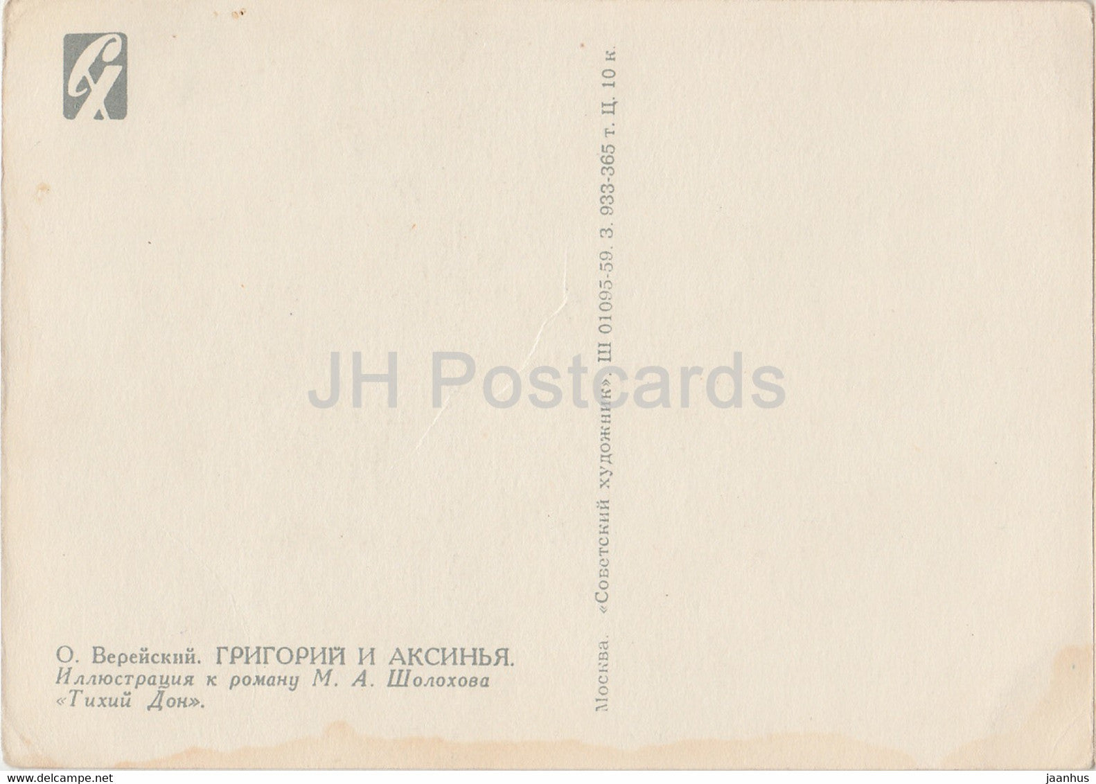 illustration by O. Vereysky - Grigoriy and Aksinya - And Quiet Flows the Don - 1 - 1959 - Russia USSR - unused