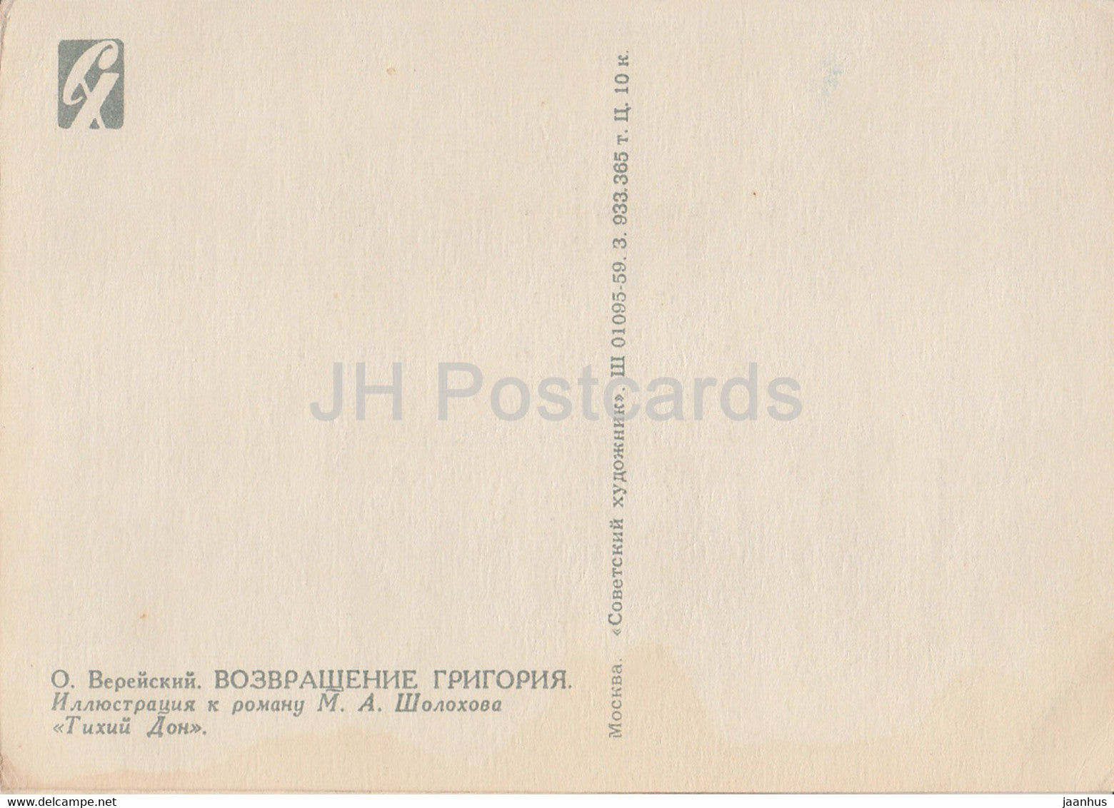 illustration by O. Vereysky - Grigoriy return - And Quiet Flows the Don by Sholokhov - 1 - 1959 - Russia USSR - unused