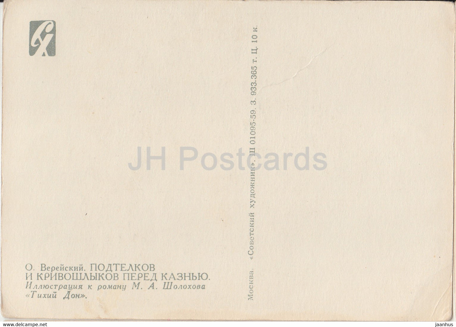 illustration by O. Vereysky - Podtyolkov and Krivoshlykov - And Quiet Flows the Don - 1 - 1959 - Russia USSR - unused