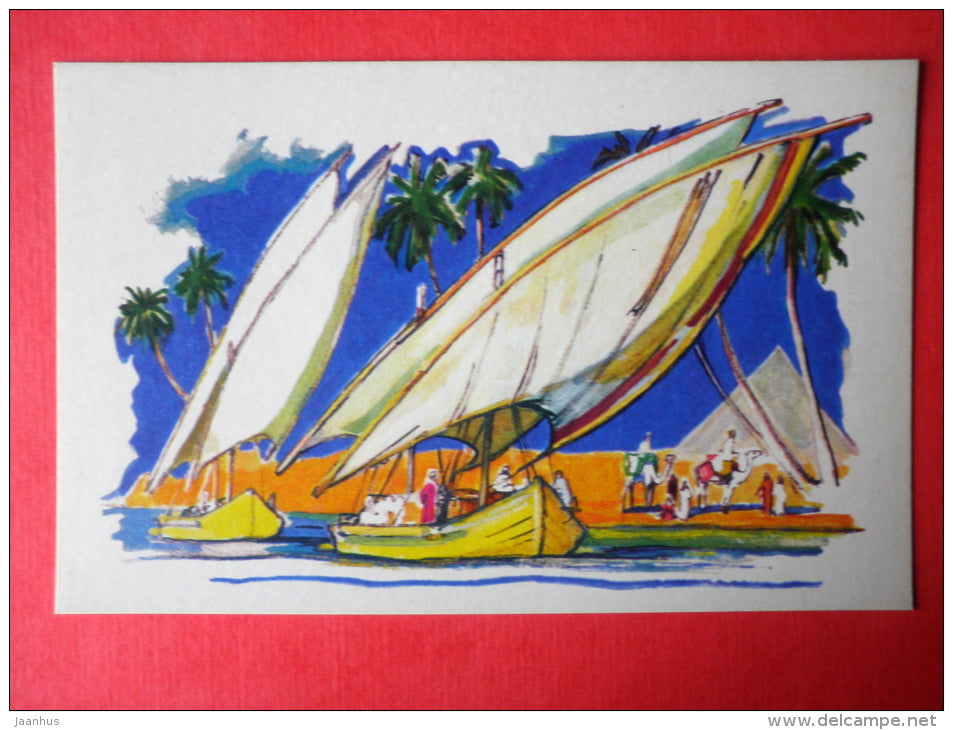 illustration by P. Pavlinov - Felucca - Egypt - Boats of the World - 1971 - Russia USSR - unused