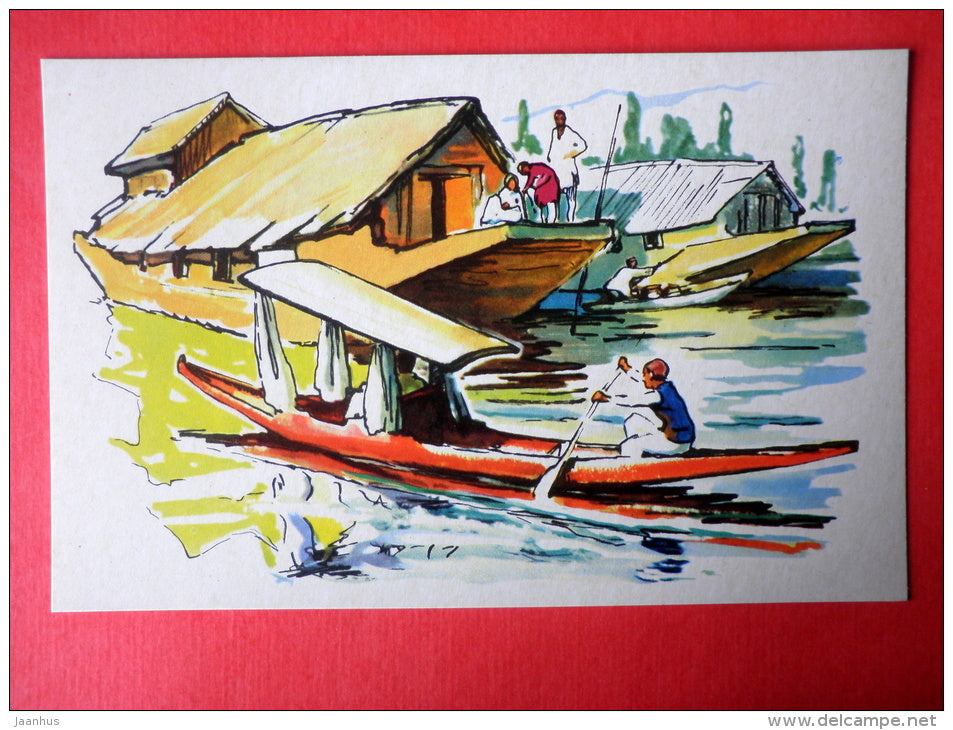 illustration by P. Pavlinov - Shikara - India - Boats of the World - 1971 - Russia USSR - unused
