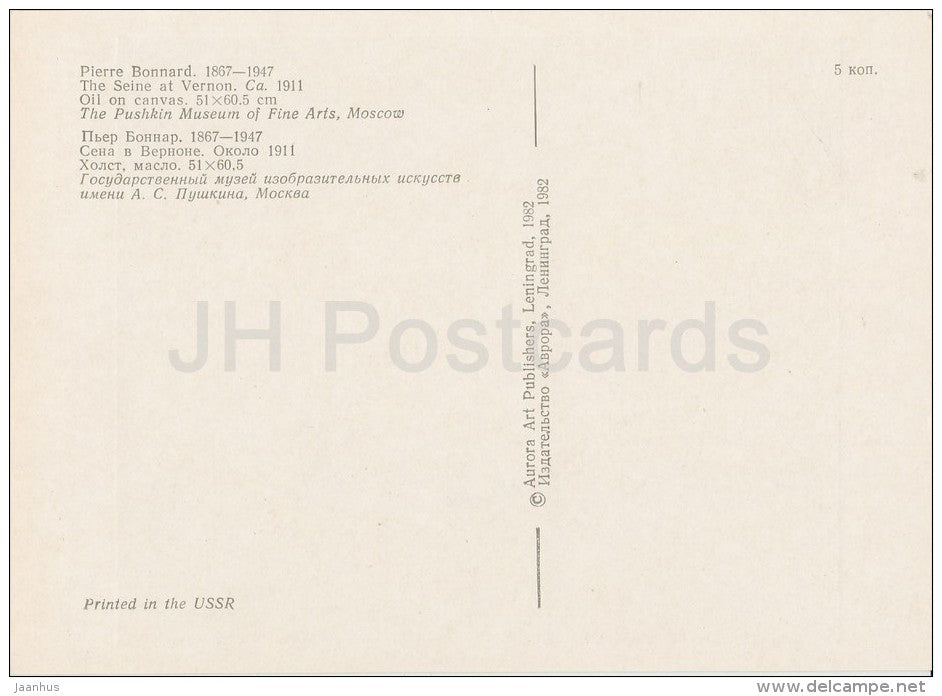 illustration by Pierre Bonnard - The Seine river at Vernon , 1911 - French Art - 1982 - Russia USSR - unused