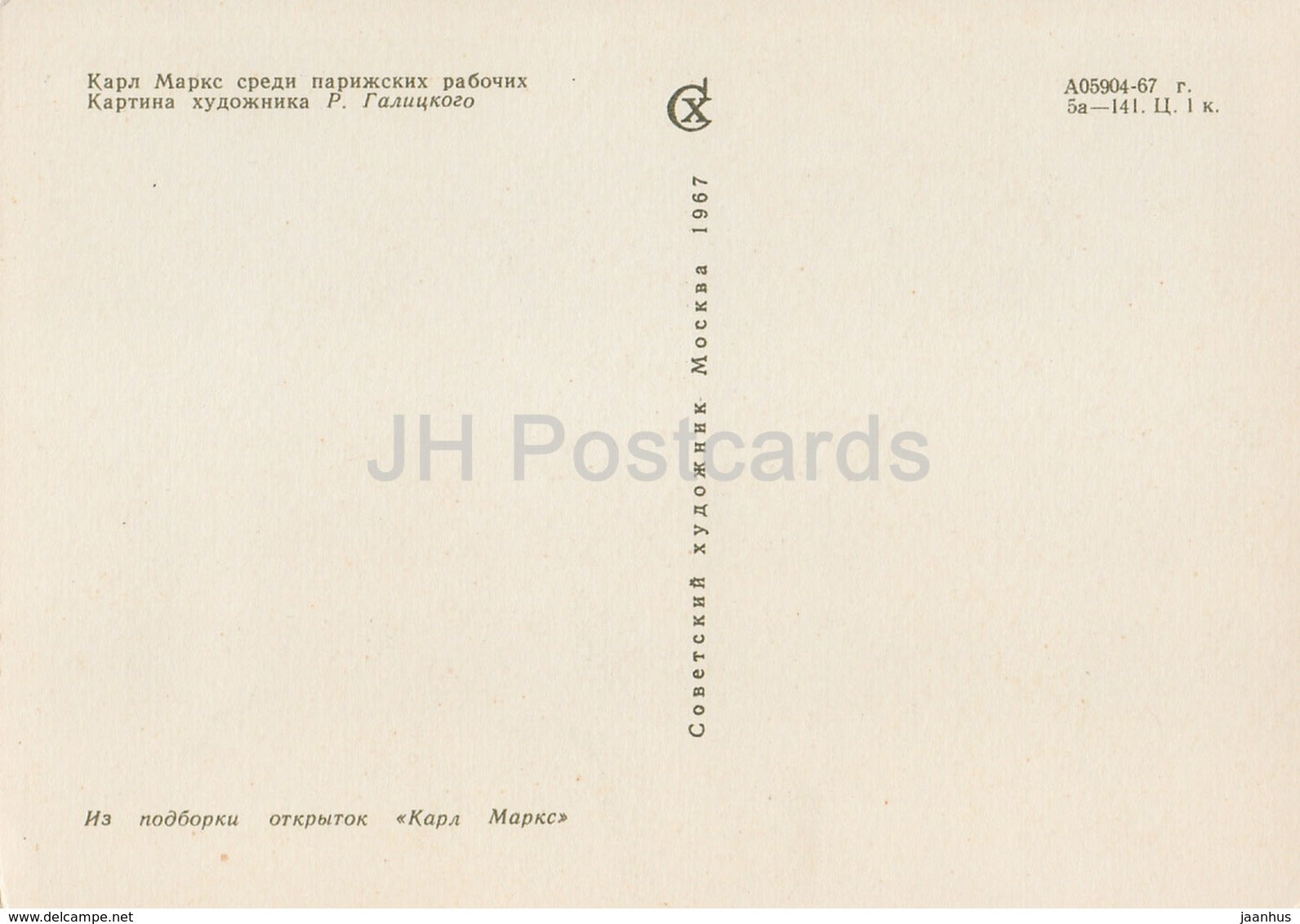 illustration by R. Galitsky - Karl Marx with workers in Paris - 1967 - Russia USSR - unused