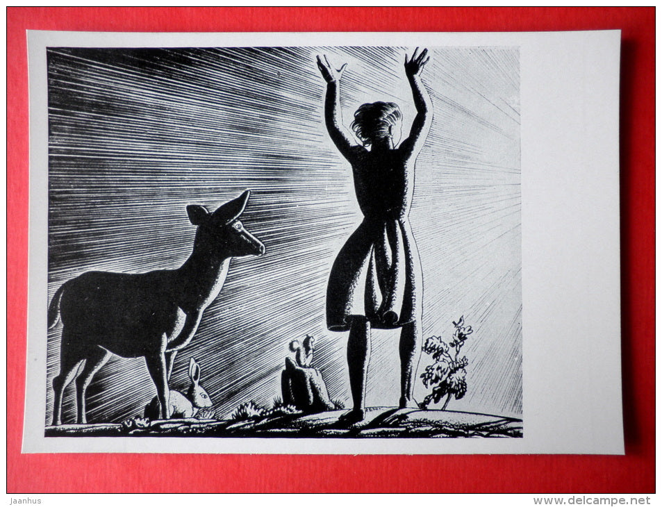 illustration by Rockwell Kent - This is My Own by Rockwell Kent . 1940 - deer - hare - girl - art of USA - unused