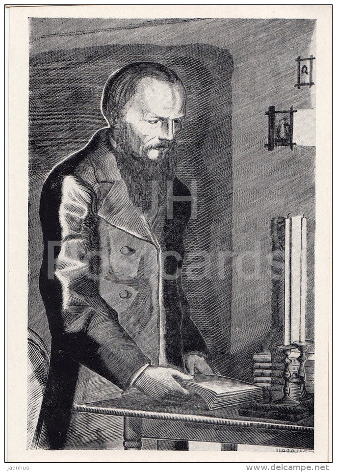 illustration by V. Favorsky - Russian Writer F. Dostoyevsky - 1961 - Russia USSR - unused