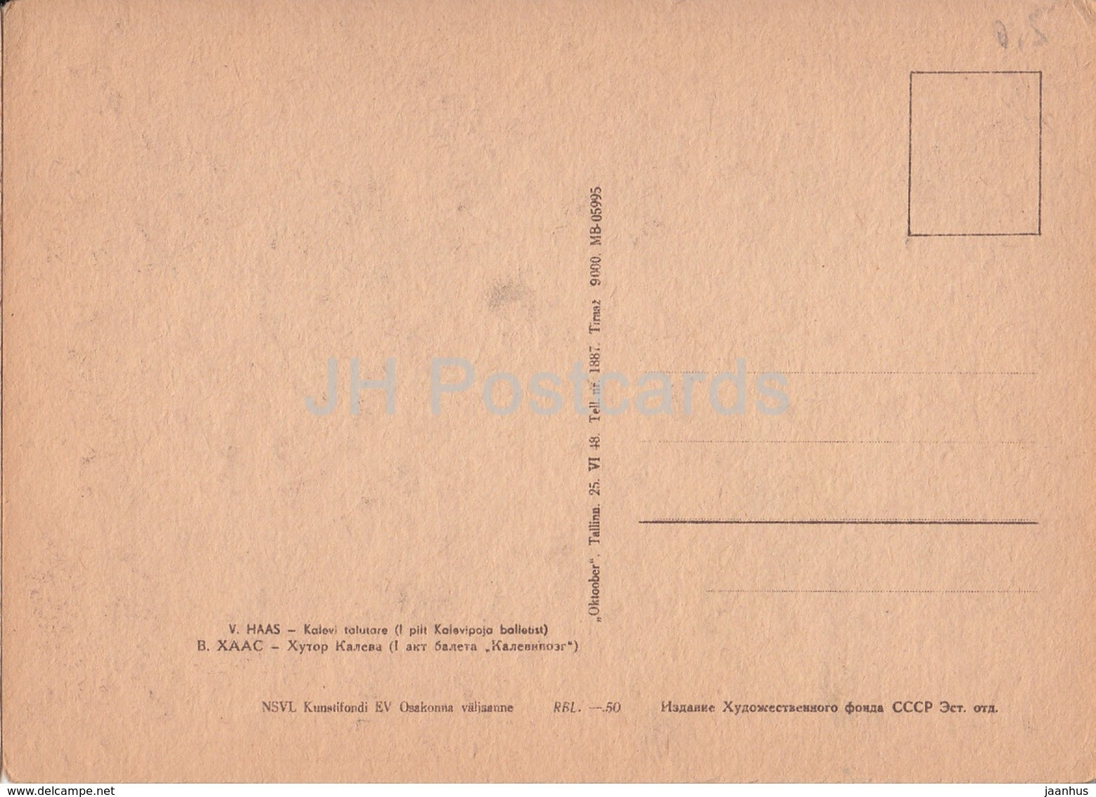 illustration by V. Haas - Kalev Farmstead - Scene from ballet of Kalevipoeg - 1948 - Estonia USSR - unused