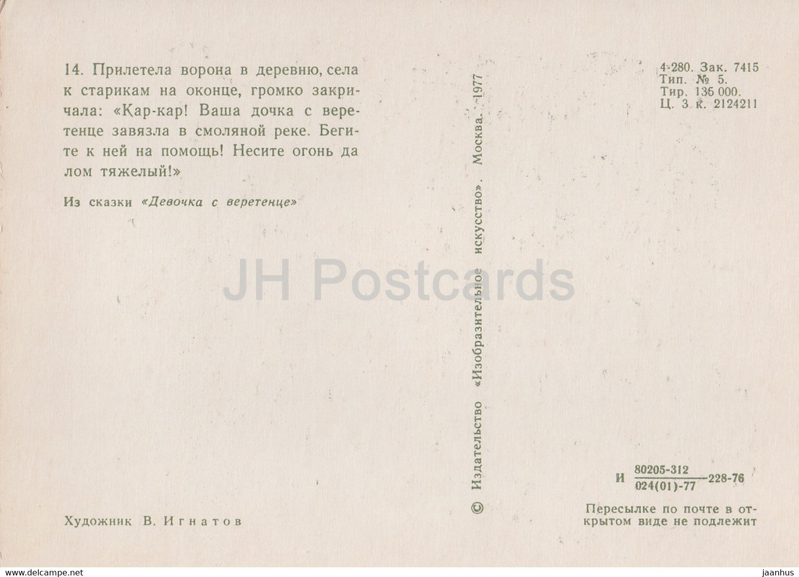 illustration by V. Ignatov - Girl with a spindle - crow - Komi fairy tale - 1977 - Russia USSR - unused