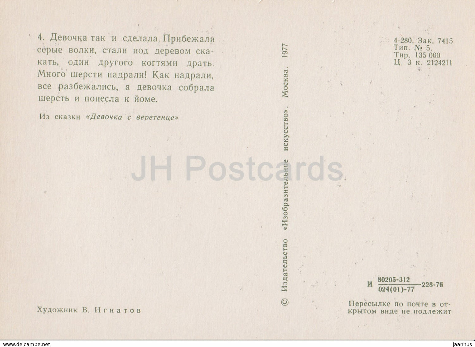 illustration by V. Ignatov - Girl with a spindle - wolves - Komi fairy tale - 1977 - Russia USSR - unused