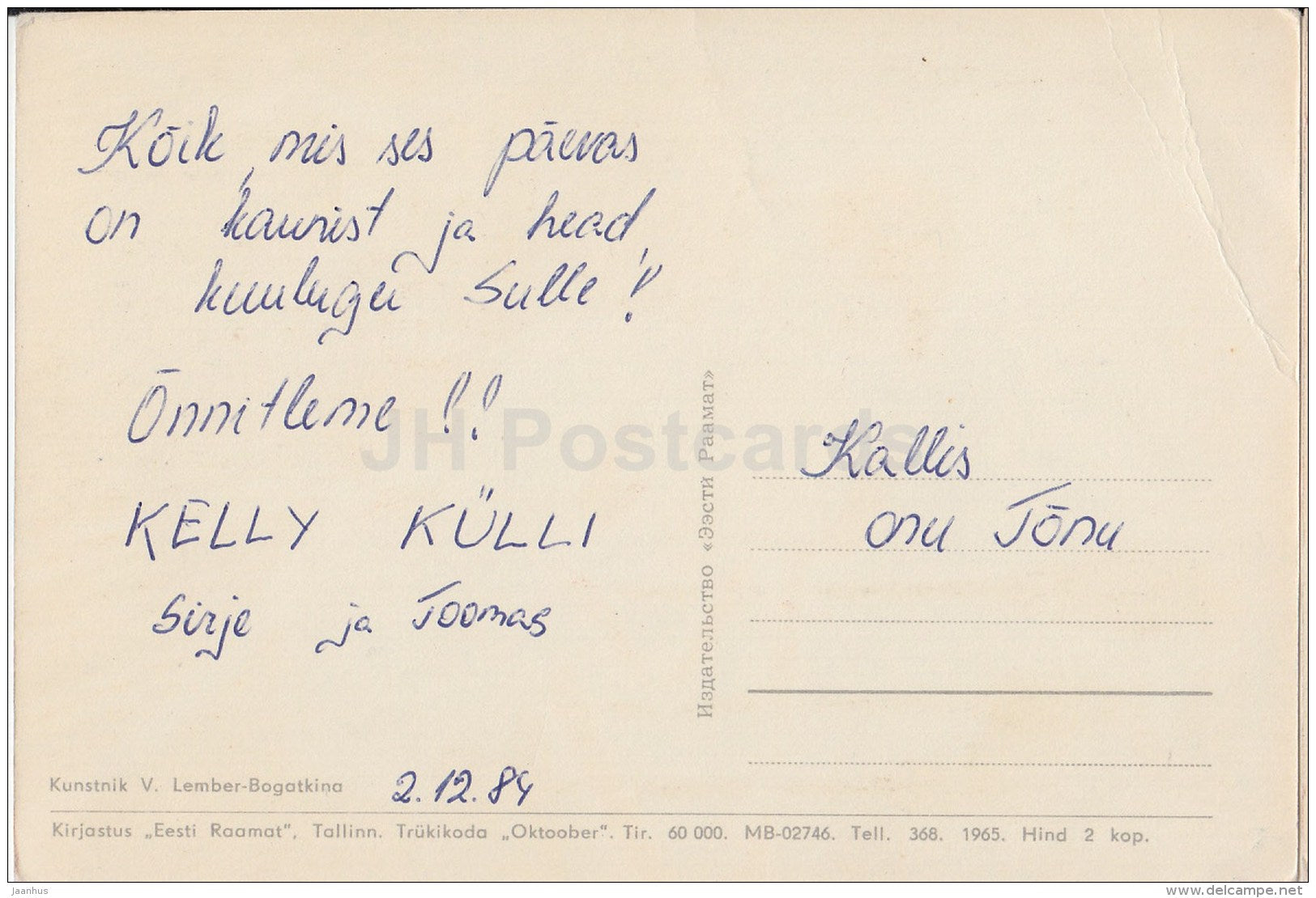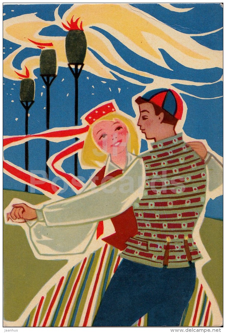 illustration by V. Lember-Bogatkina - Dancing in Folk Costumes - 1965 - Estonia USSR - used