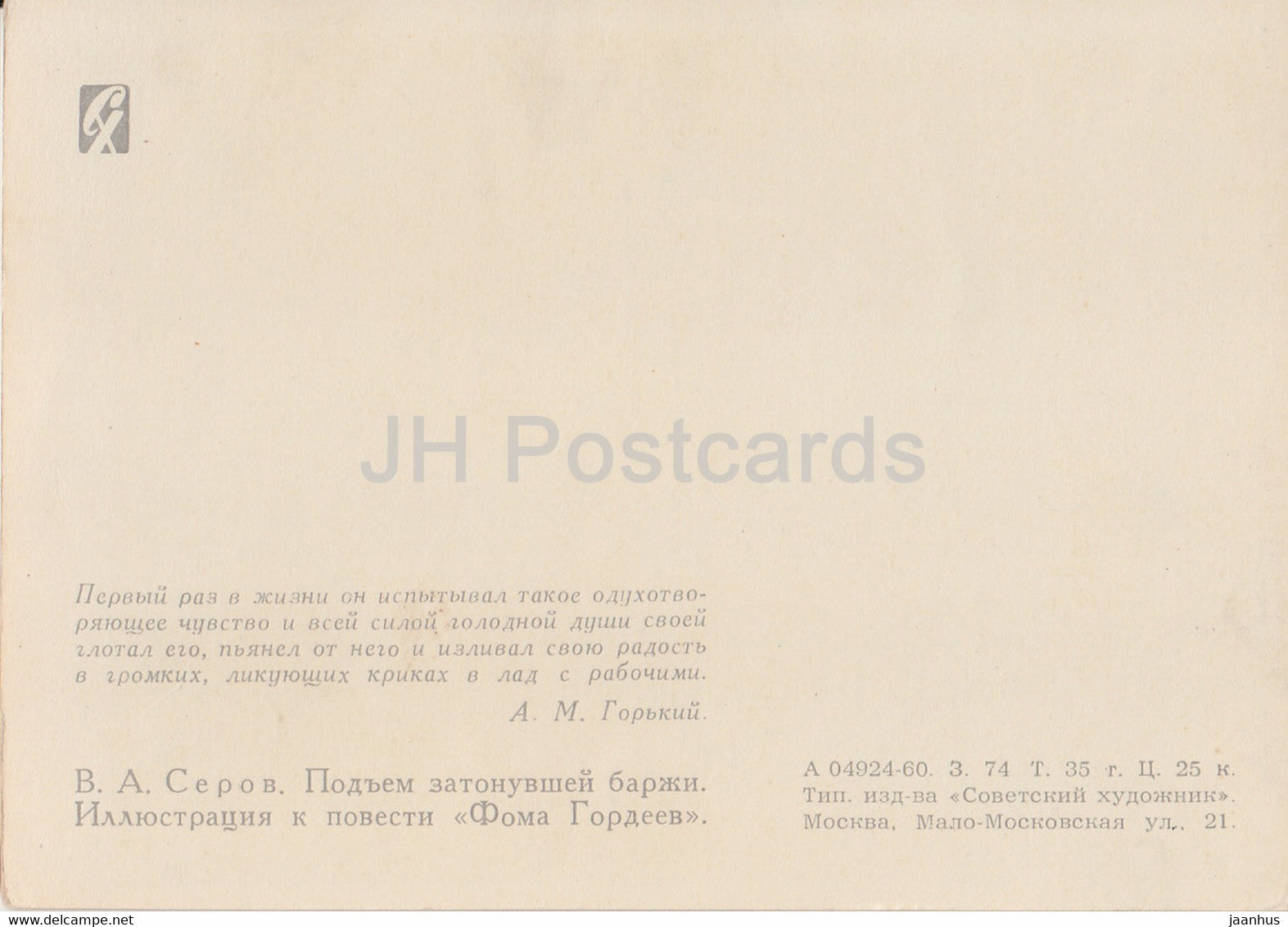 illustration by V. Serov - Raising a sunken barge - Foma Gordeyev by Gorky - 1960 - Russia USSR - unused