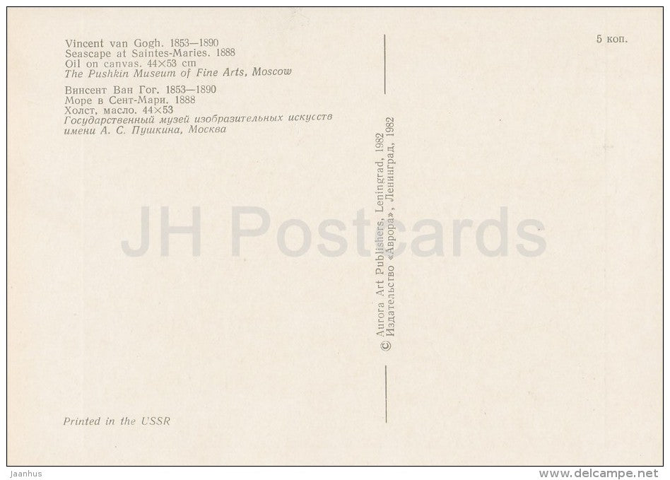 illustration by Vincent van Gogh - Seascape at Saintes-Maries , 1888 - Dutch Art - 1982 - Russia USSR - unused