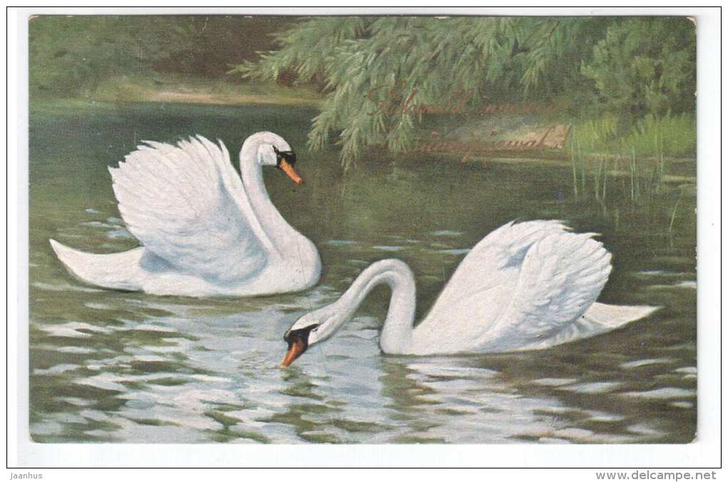 illustration - Swan - birds - 953 - old postcard - circulated in Estonia 1925 , Tallinn - used
