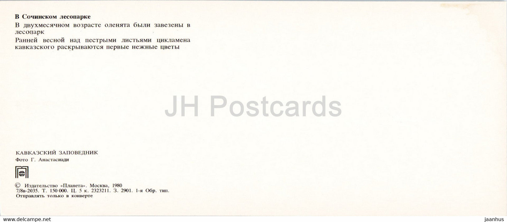 In Sochi Forest Park - cyclamen - deer - animals - Caucasian Nature Reserve - 1980 - Russia USSR - unused