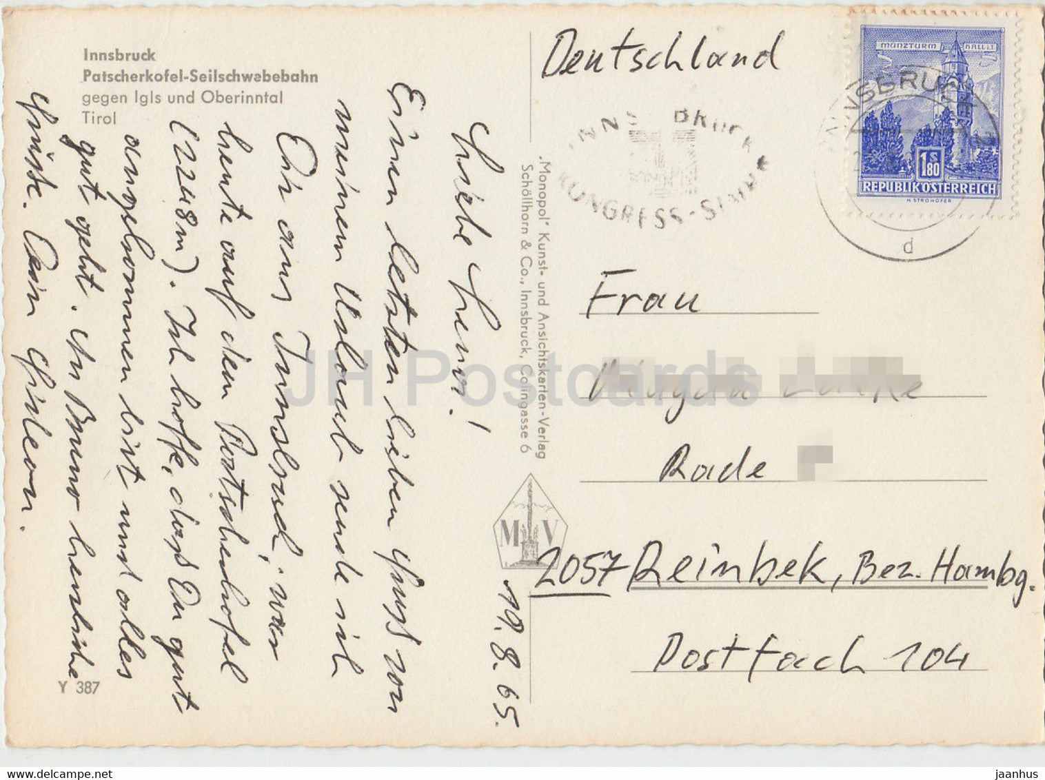 Innsbruck - Patscherkofel Seilschwebebahn gegen Igls und Oberinntal - Tirol - cable car - 1965 - Austria - used