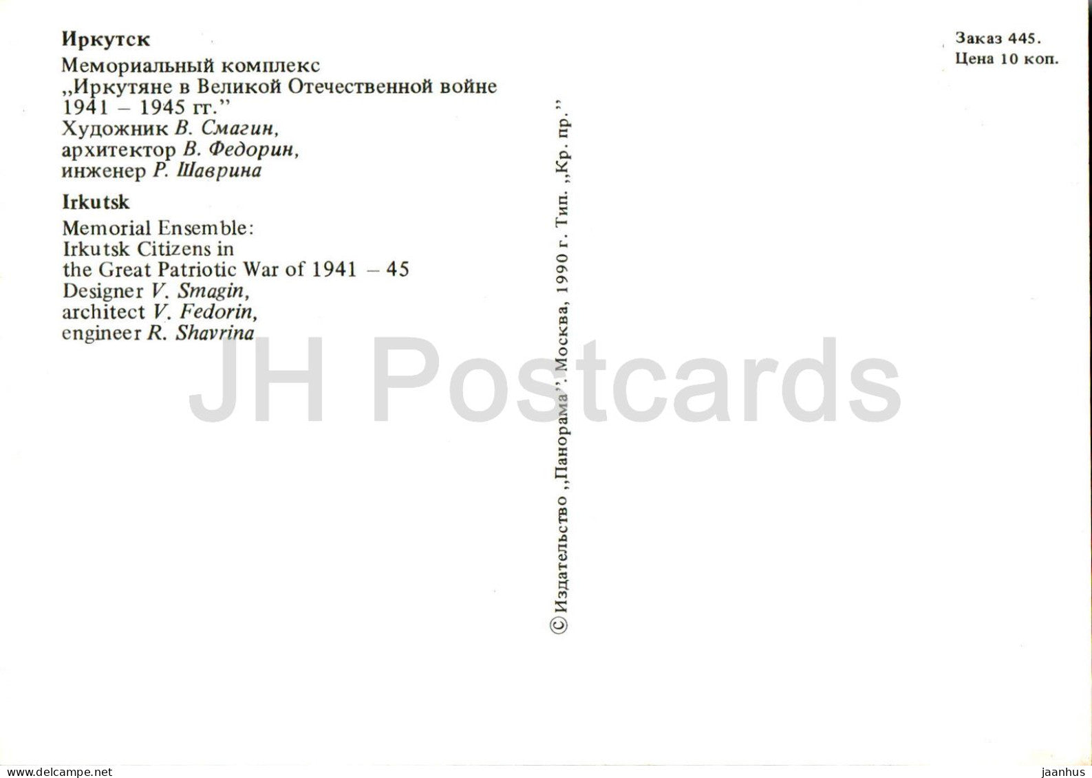 Irkutsk - Memorial Ensemble - Irkutsk Citizens in WWII - monument - 1990 - Russia USSR - unused