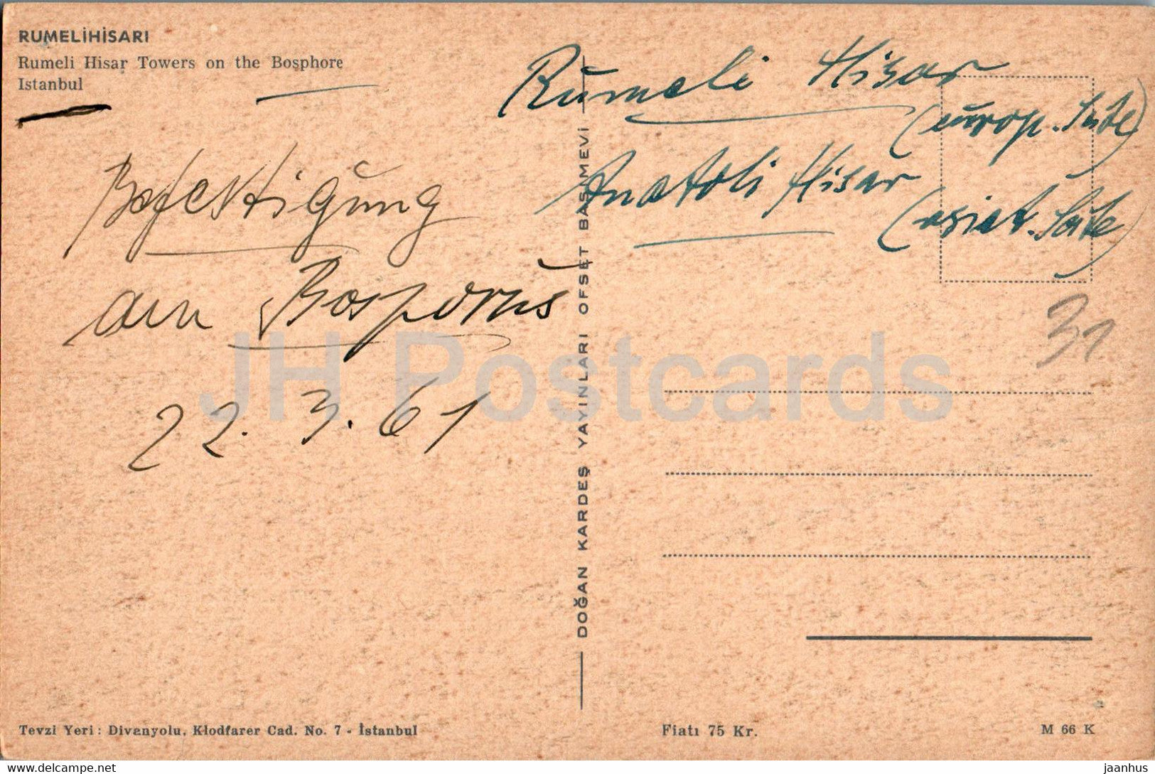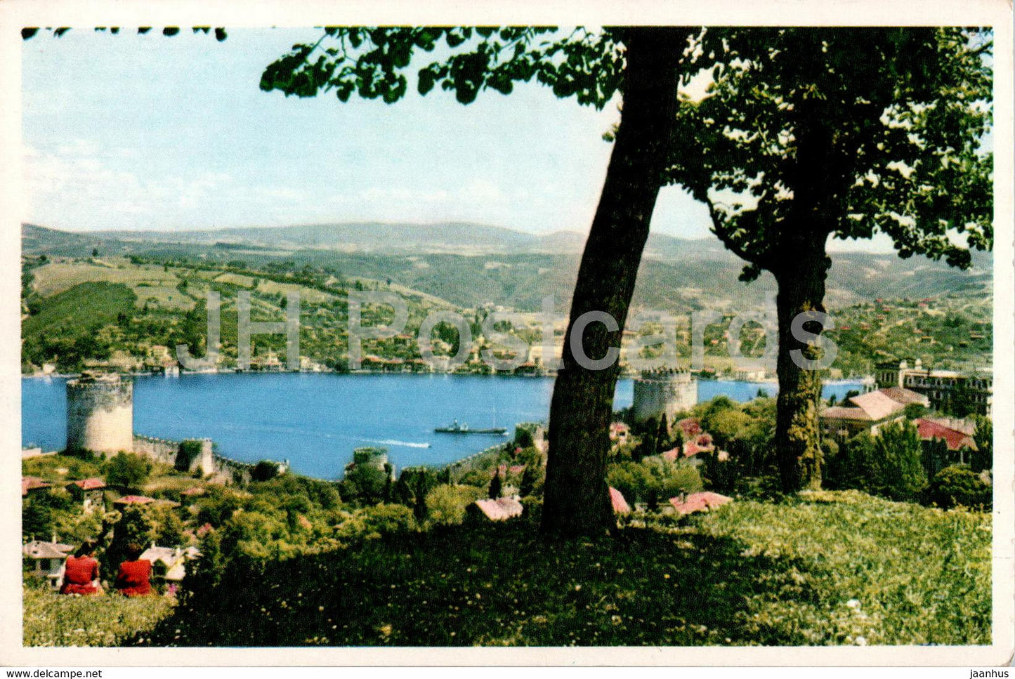 Istanbul - Rumeli Hisar Towers on the Bosphore - old postcard - 1961 - Turkey - used