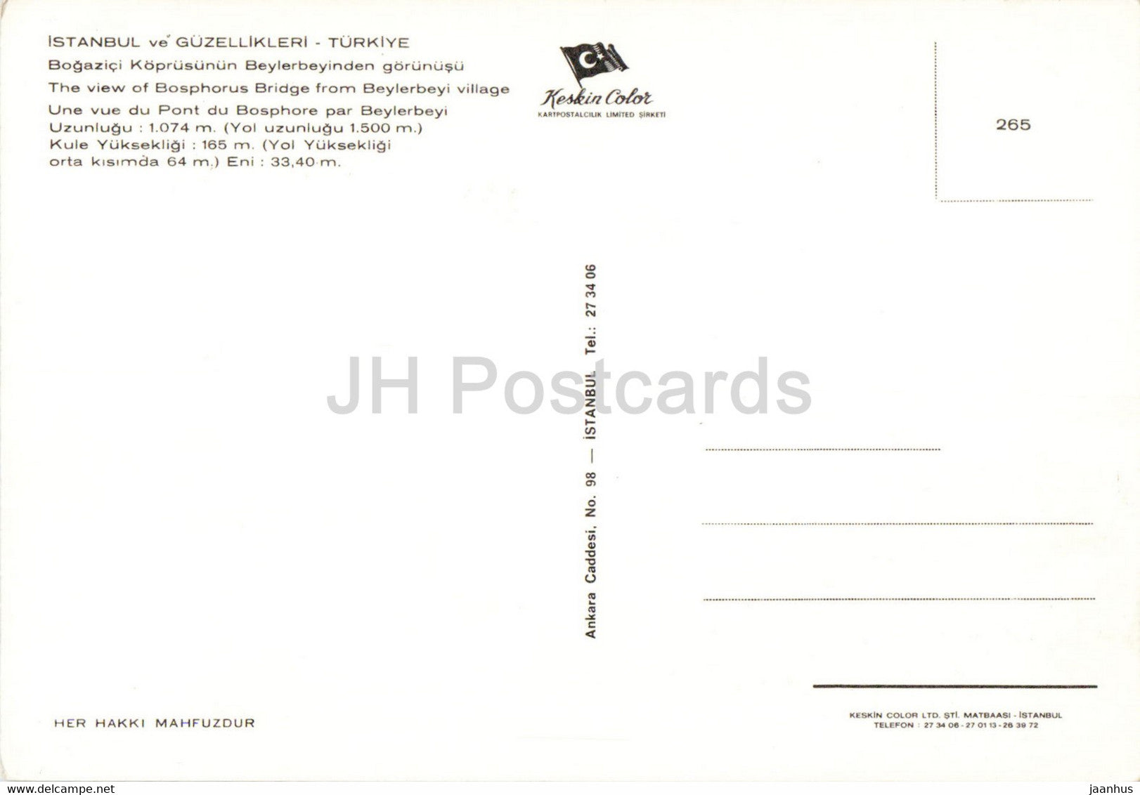Istanbul - The view of Bosphorus Bridge from Beylerbey village - 265 - Keskin Color - Turkey - unused