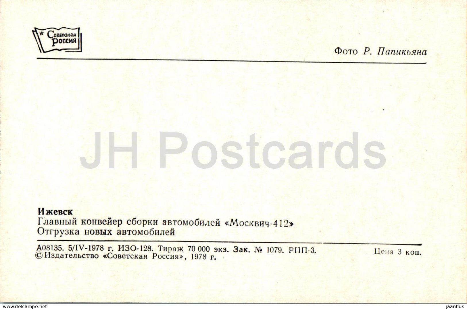 Izhevsk - main car assembly line of Moskvich 412 - car - 1978 - Udmurtia - Russia USSR - unused