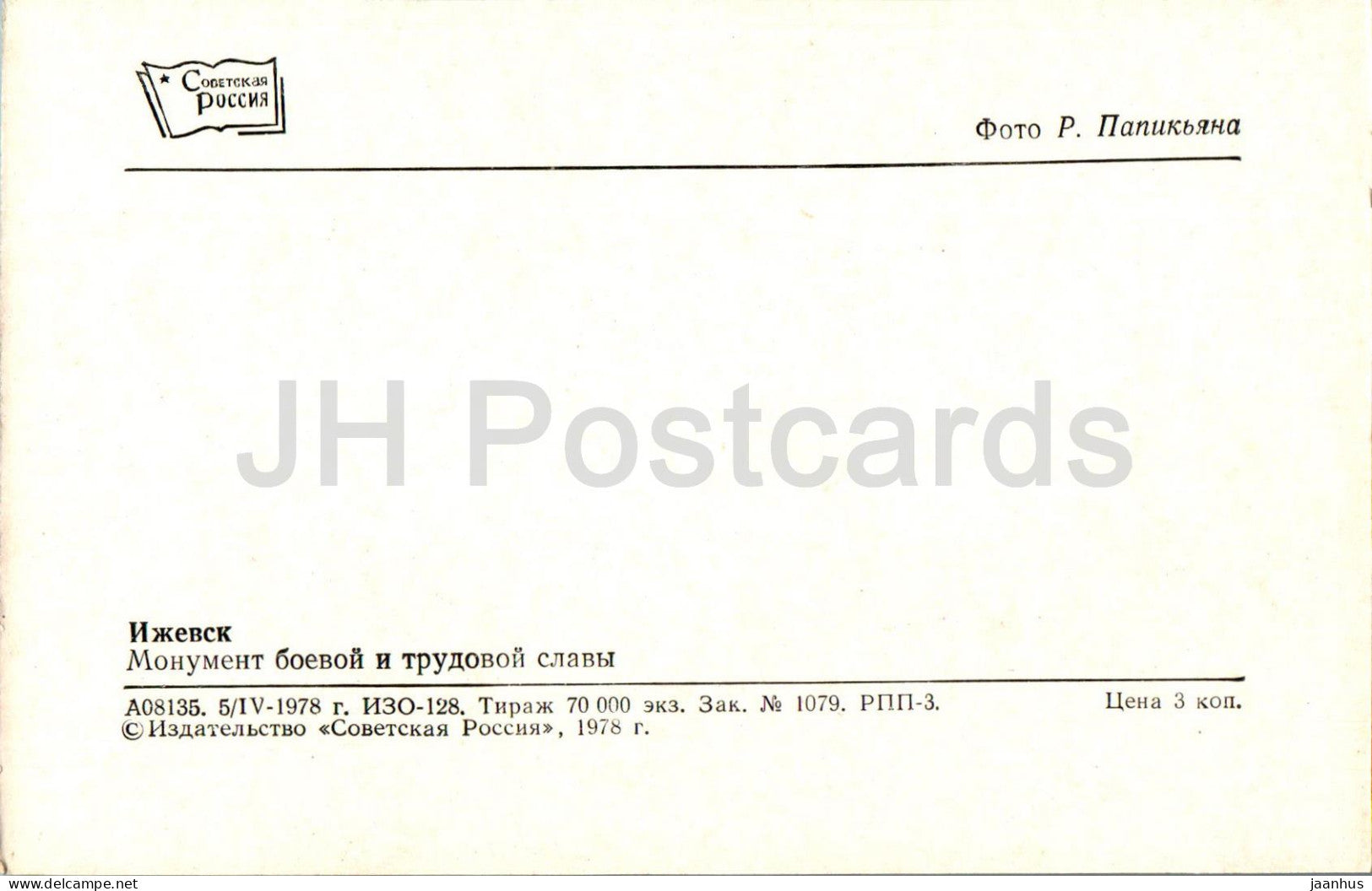 Izhevsk - Monument of military and labor glory - 1978 - Udmurtia - Russia USSR - unused