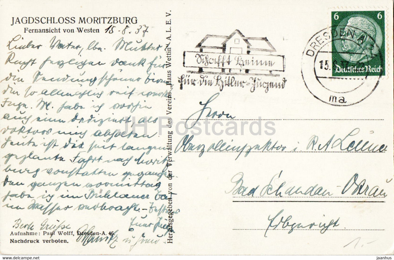 Jagdschloss Moritzburg - Fernansicht von Westen - castle - old postcard - 1937 - Germany - used
