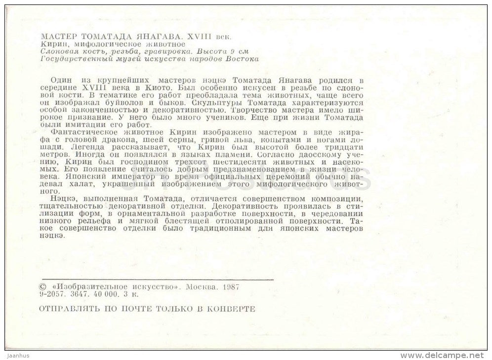 japanese carving by Tomatada Yanagawa - Kirin , mythological animal - japanese art - unused