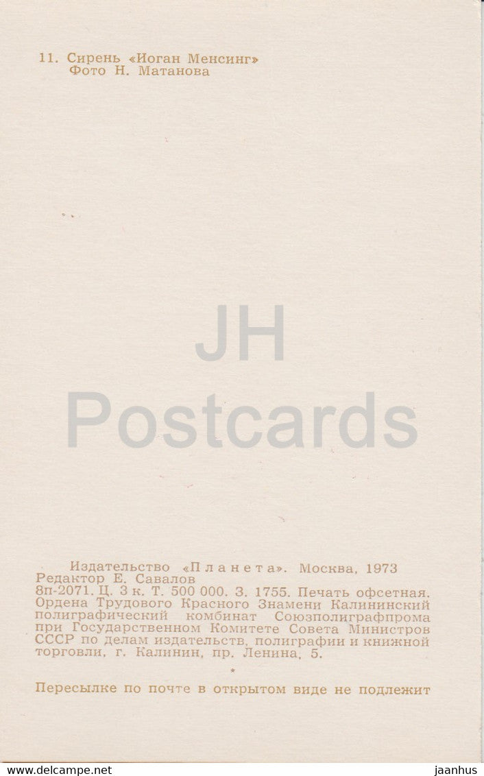 Johan Mensing - Lilac - Flowers - 1973 - Russia USSR - unused