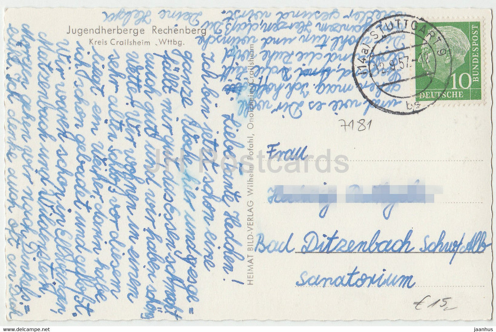 Jugendherberge Rechenberg - Kreis Crailsheim - old postcard - 1957 - Germany - used