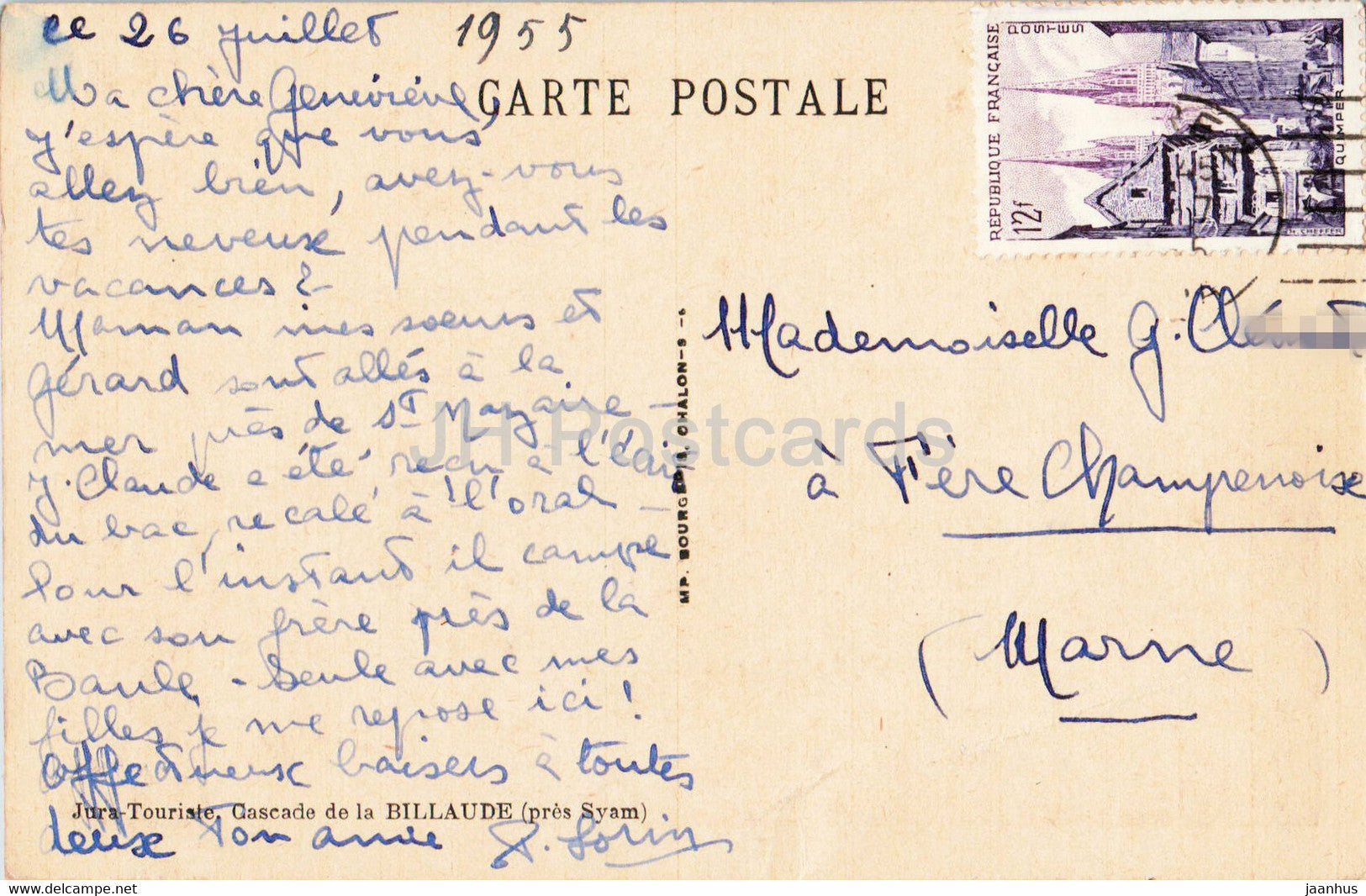 Jura Touriste - Cascade de la Billaude - old postcard - 1955 - France - used