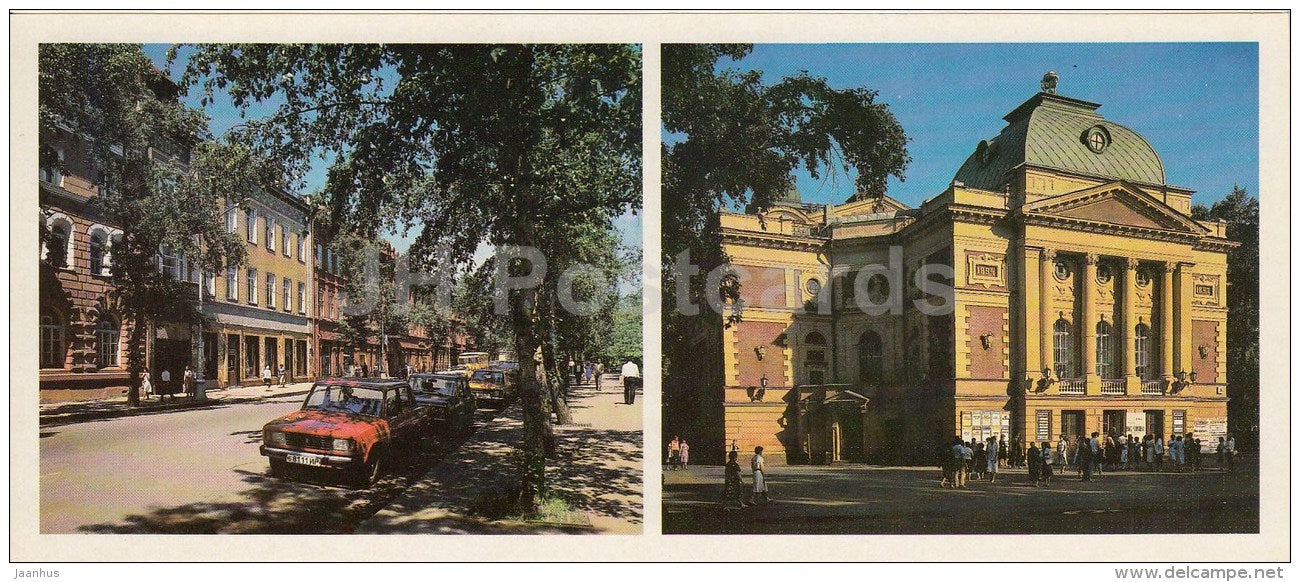K. Marx street , car Zhiguly - Okhlopkov Drama Theatre - Irkutsk - 1987 - Russia USSR - unused