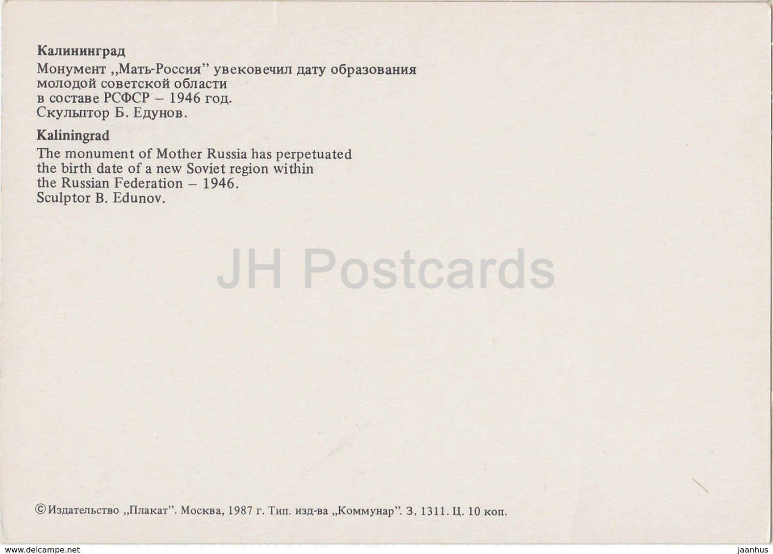 Kaliningrad - Konigsberg - monument of the Mother Russia - 1987 - Russia USSR - unused