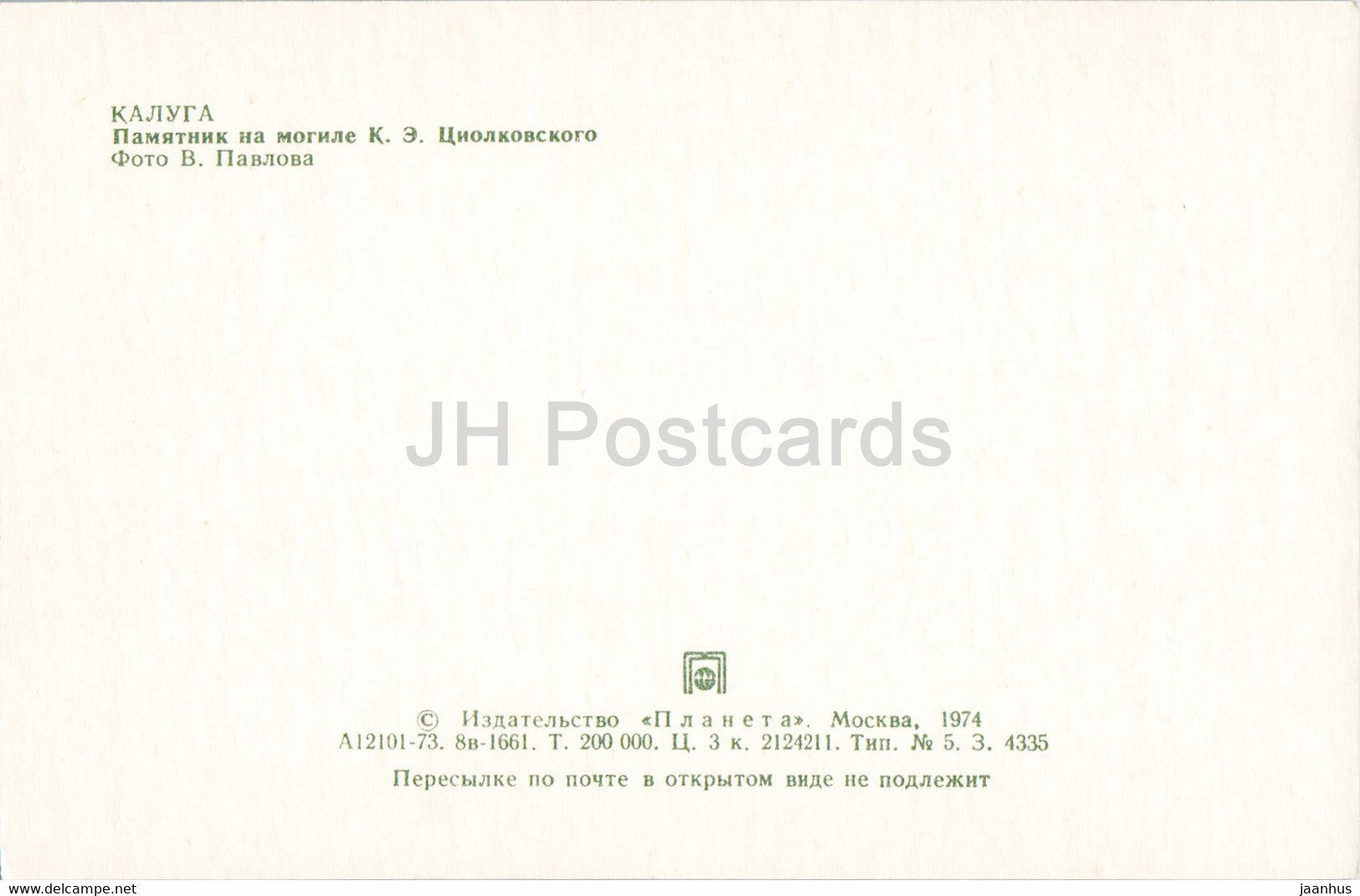 Kaluga - monument at the grave of Russian scientist Konstantin Tsiolkovsky - 1974 - Russia USSR - unused