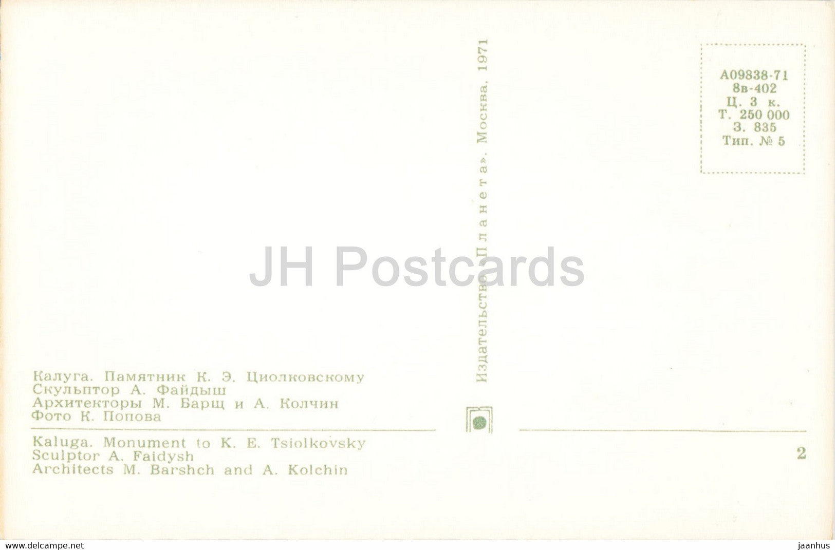 Kaluga - monument to Tsiolkovsky - 1971 - Russia USSR - unused