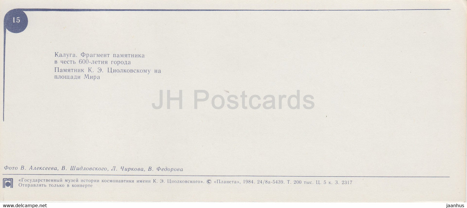 Kaluga - monument - Tsiolkovsky State Museum of the History of Cosmonautics - 1984 - Russia USSR - unused