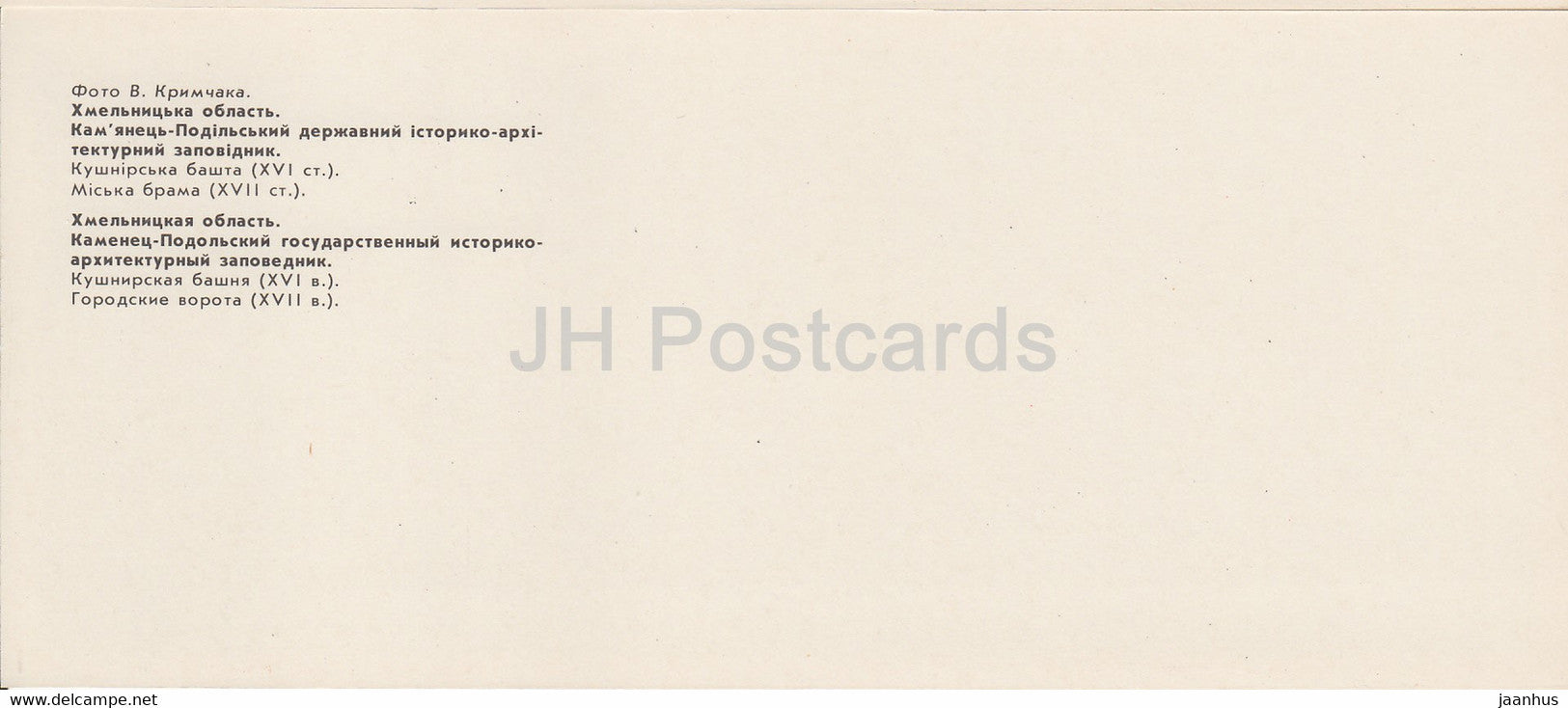 Kamianets Podilskyi - Khmelnytskyi Region - Kushnirskaya tower - City Gate - 1984 - Ukraine USSR - unused